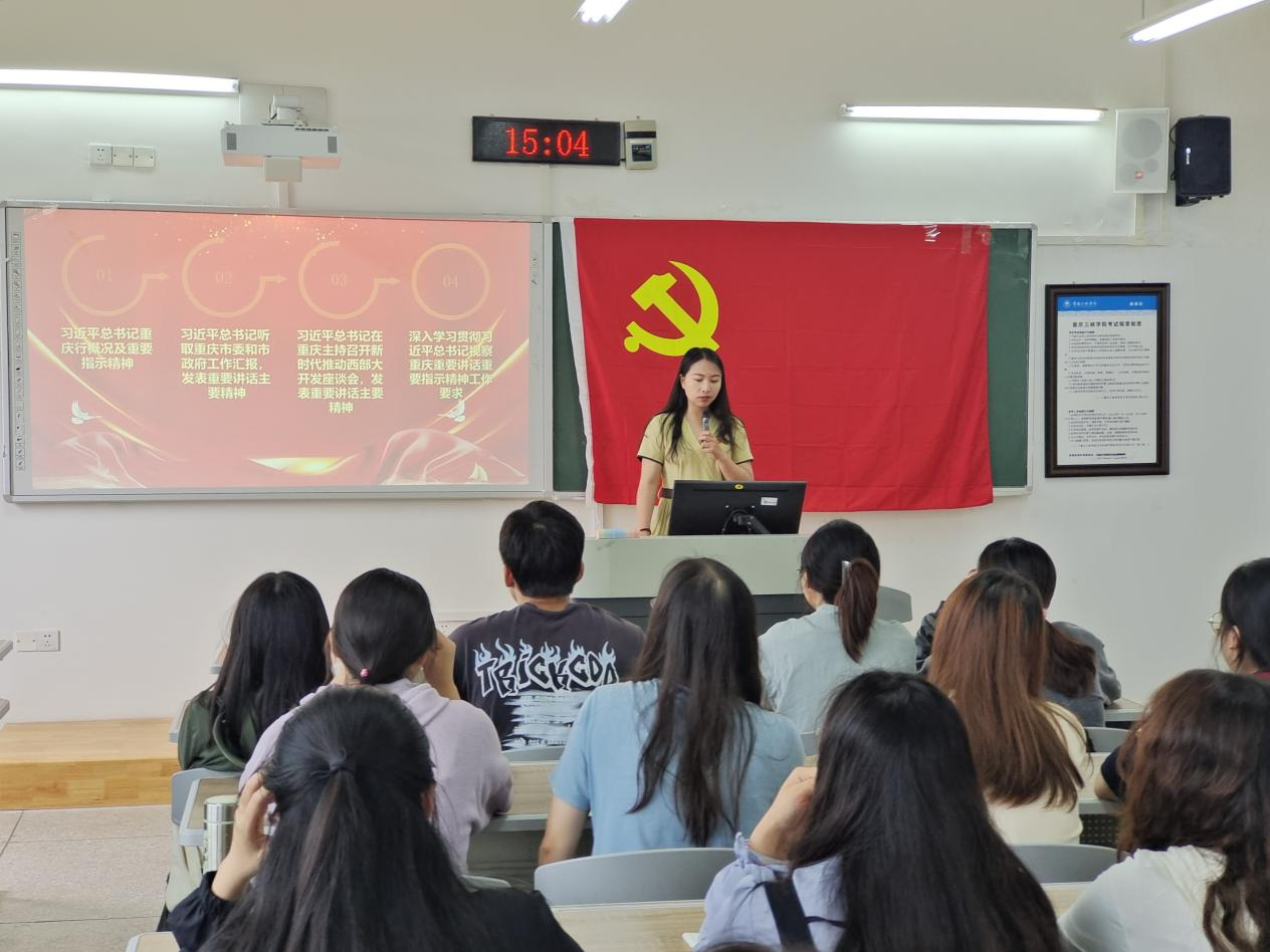 薛娟书记介绍了习近平总书记重庆行的概况,并详细解读了总书记在视察期间的重要讲话精神。薛娟希望全体师生党员和入党积极分子要深刻领会把握习近平总书记对重庆工作成绩“六个新”的肯定勉励深刻领会把握总书记赋予重庆新的时代使命和战略定位深刻领会把握习近平总书记对重庆高质量发展明确的四项重大任务深刻领会把握以“六个坚持”谱写西部大开发新篇章的重大部署深刻领会把握总书记对加强党的建设提出的新指示新要求。全体师生党员和入党积极分子纷纷表示,聆听了薛娟书记做的宣讲报告后,对习近平总书记视察重庆重要讲话重要指示精神有了更加全面、深入的理解和掌握,要以实际行动贯彻讲话精神,为学校和学院的发展贡献自己的力量。