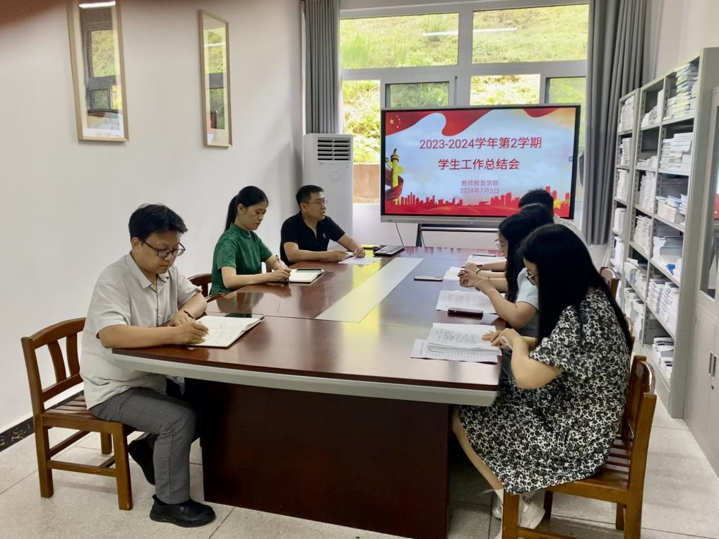 2024年7月3日下午,44118太阳成tyc城集团在博学楼3栋129召开2023-2024学年第2学期学生工作总结会,会议由学工办负责人黄成毅博士主持,全体学工人员参加。