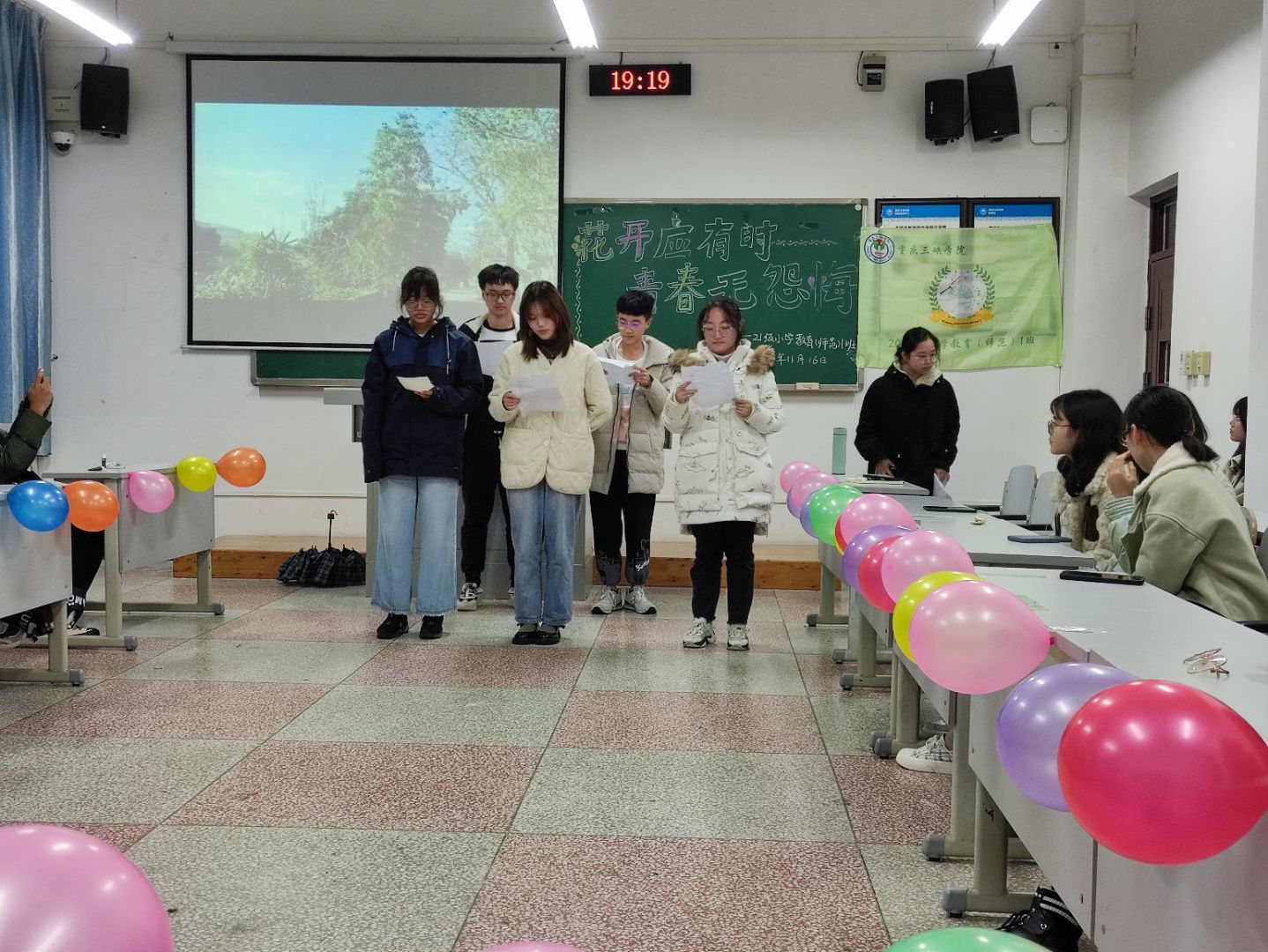 为了进一步提高大一新生心理承受能力,促进同学们的心理健康,2021年11月1617日晚上7点44118太阳成tyc城集团2021级各班在明辨楼开展了“花开应有时,青春无怨悔”主题心理班会。