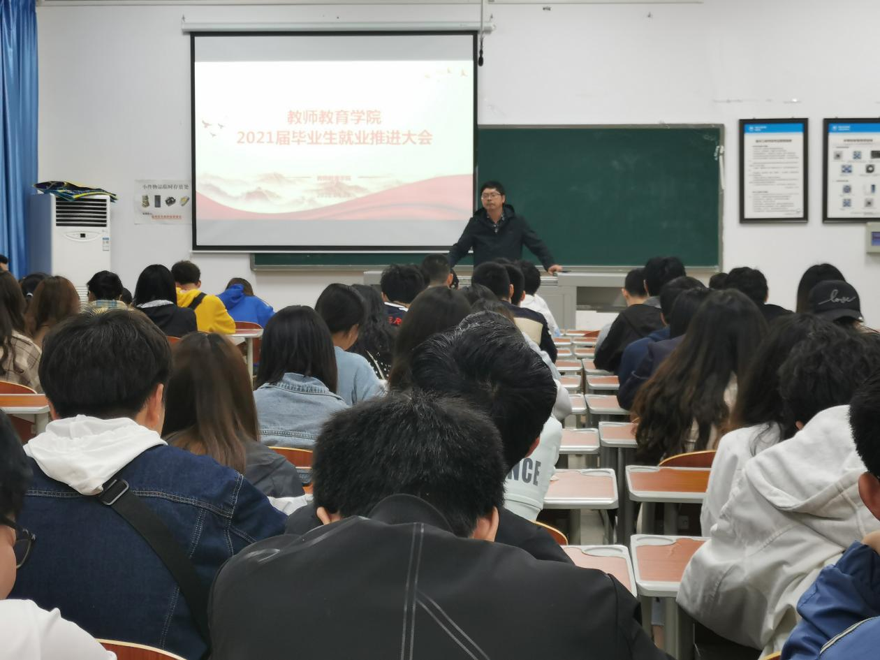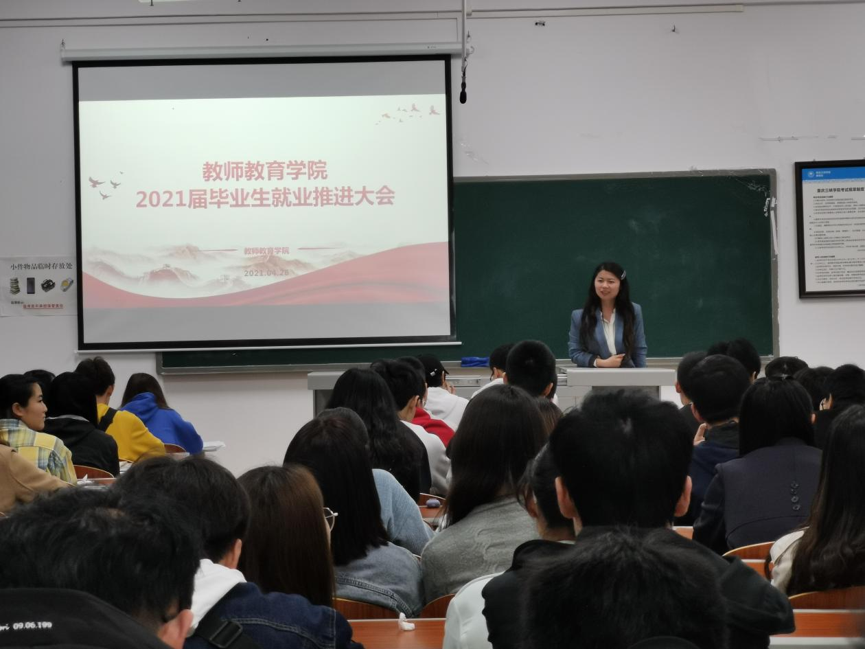 为进一步推进2021届毕业生就业工作,我院于2021年4月26日19:00在慎思楼4栋516教室召开了2021届毕业生就业工作推进会。出席会议的有我院党总支书记胡秀忠,党总支副书记李中春,学工办副主任高曼,2021届辅导员张京友及2021届物理(师范)、化学(师范)和生物科学(师范)三个本科专业的全体毕业生,此次会议由高曼同志主持。