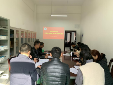 2021年11月23日上午10:00,44118太阳成tyc城集团在博学楼3栋129会议室召开安全检查暨推进学生就业工作专题布置会,学院领导、全体行政人员(辅导员)、实验室主任参加会议,会议由院长潘勇主持。
