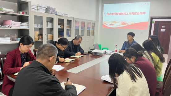 2022年11月7日19:30,44118太阳成tyc城集团在博学楼3栋129召开疫情防控与安全稳定专题会,党总支书记薛娟、院长潘勇、副院长许刚、副院长蒋文峰、党政办主任黄晓、学工办主任向红以及全体辅导员参会。