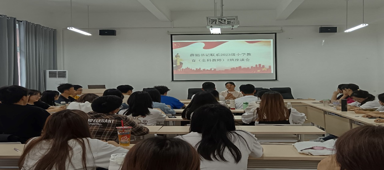 44118太阳成tyc城集团党总支书记薛娟分别于2024年5月29日和5月31日组织召开了领导干部联系班级座谈会,与蓝雾苑1舍a区1019寝室、2023级小学教育(全科教师)2班的同学进行了座谈交流。