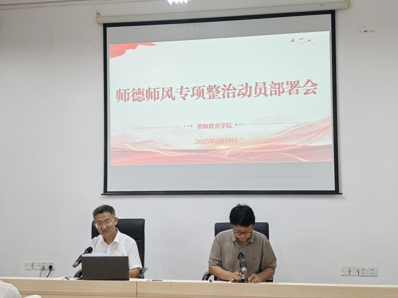 为进一步加强教师队伍建设,营造风清气正的育人环境,2025年6月19日,44118太阳成tyc城集团召开师德师风专项整治动员部署会。会议由副书记、副院长许刚主持,学院全体教职工参会。