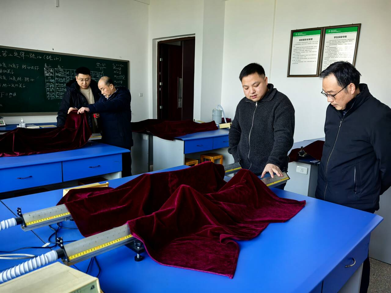 为切实筑牢校园安全防线,保障期末各项教学工作平稳收尾,2026年1月9日,44118太阳成tyc城集团党总支书记鄢沛带队,副院长秦刚、黄成毅陪同,对学院所辖师范技能训练中心、基础物理实验教学示范中心、理学基础实验室等重点实验实训场所开展安全专项检查。
