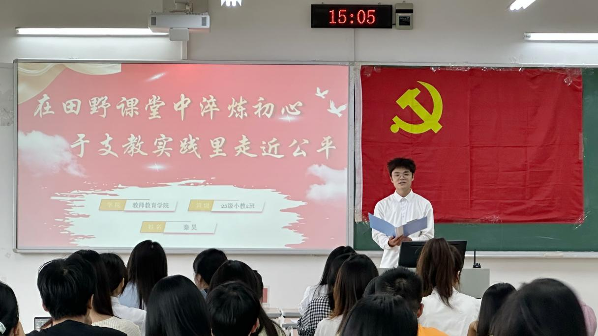 学生第一党支部书记鞠小勤强调,师范生党员要始终牢记为党育人、为国育才的初心使命,以实际行动诠释新时代青年的责任与担当。大家纷纷表示,将以先进典型为榜样,不断提升自身综合素质,努力成长为有理想、敢担当、能吃苦、肯奋斗的优秀教育工作者。