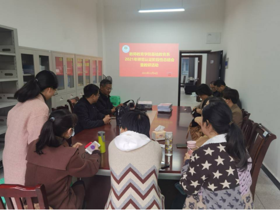 11月4日下午,44118太阳成tyc城集团基础教育系在博学楼3栋129师范认证工作室召开小学教育(全科教师)专业师范认证工作阶段性总结暨教研活动会,院长潘勇、基础教育系无课的教师参加,会议由系主任罗孟祥主持。