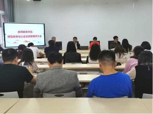 6月8日下午14:30,学院在博学楼3栋138会议室召开师范类专业认证总结暨整改大会,会议由副院长蒋文峰主持,全体教职工参加。
